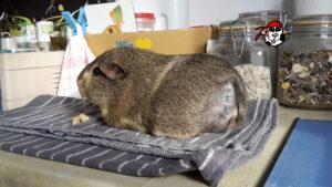 Im Sommer verstarb Struppis Bruder Hummel viel zu früh an einem bösartigen Krebs am Kiefer. Struppi hat zwar auch eine kirschgroße Geschwulst am Po, aber das ist nur eine endartete Talgdrüse, Fettgeschwulst. Da wir einmal ein Schweinchen (Mia) hatten, das sich nach der Entfernung einer solchen großen Talgdrüse nie mehr davon erholte und immer kränkelte, trauen wir uns da (noch) nicht ran, um es entfernen zu lassen. Struppi stört es nicht.
