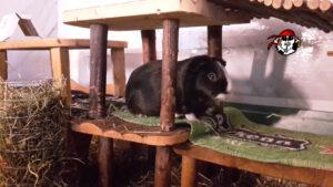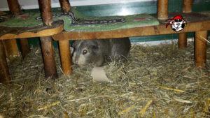 Darin wohnen der junge springfreudige Piratenkapitän Timber (schwarz-weißer Glatthaarkastrat) und die jugendliche Struppi (Glatthaar grauagouti) zusammen.