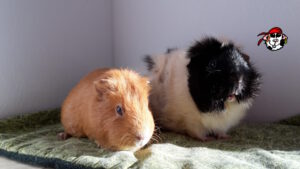 Darin wohnen die sehr große Tic-Tac vom Schneppenbacher Hof (dreifarbiges Crested) mit dem kleinen Frühkastrat Dusty von den Weiterstädter Wutzen (dreifarbiger US-Teddy) seit September 2025 zusammen.